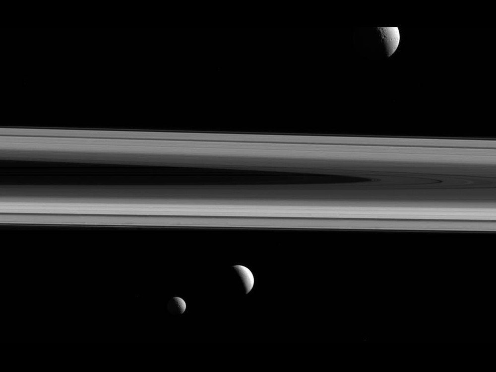 La nave Cassini capta tres de las lunas de Saturno en una fotografía. ¡Espectacular!